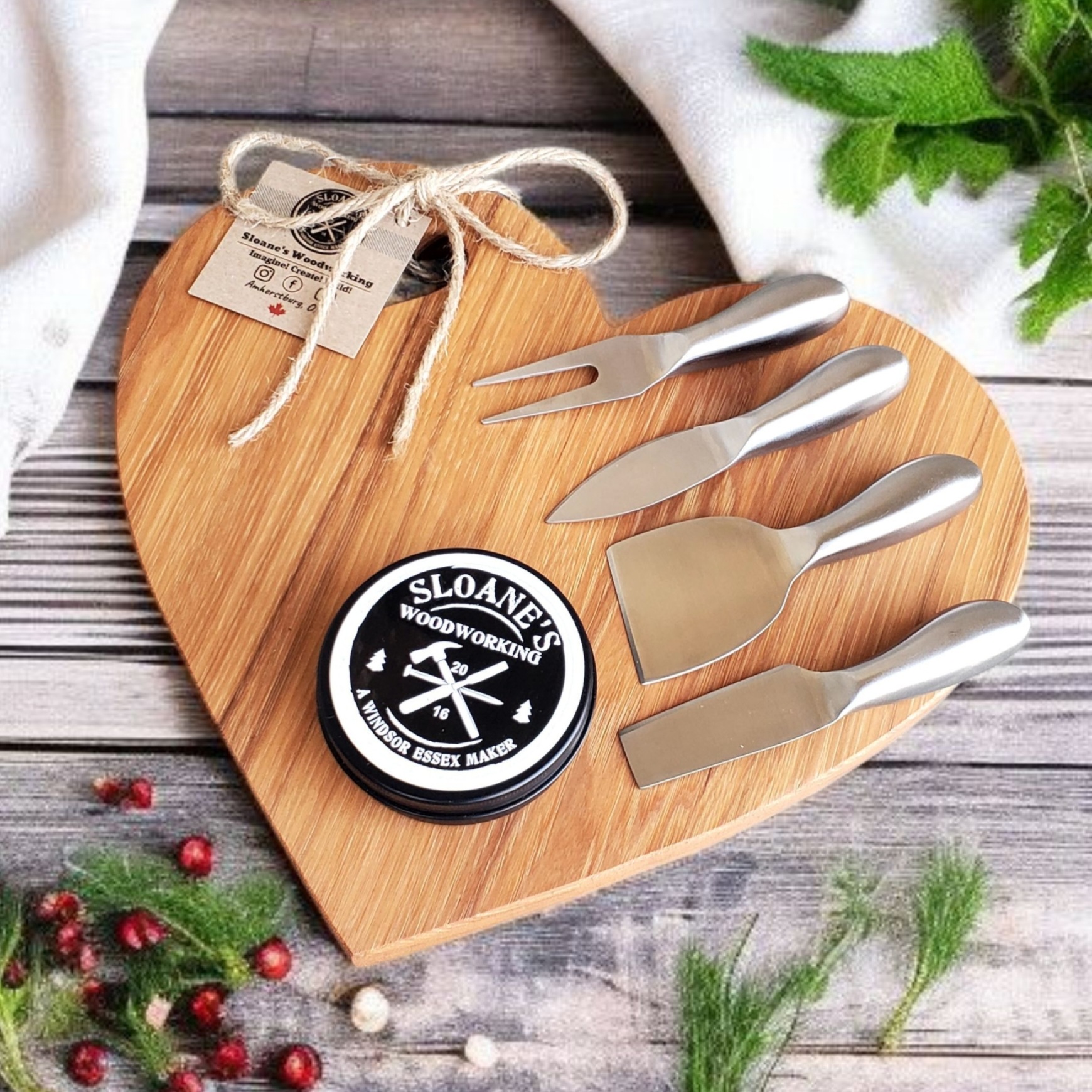 Hearts & happiness – Beautifully crafted hickory heart shaped charcuterie boards (12.5"W x 11"L). Ready to hold your favorite cheeses, snacks, and special moments. Add personalization, our 4-piece cheese knives and wood conditioner to make it a complete set! The perfect gift for those who mean the most and to show your appreciation. Wholesale pricing on 10+ boards. Shipping available for Canada & USA!